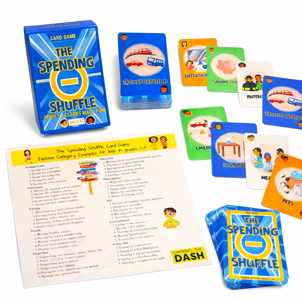 The Spending Shuffle is a fast-paced, memory-style card game that transforms playful competition into powerful financial learning. Ideal for kids 4+ and perfect for family game nights, classrooms, and homeschool pods.
